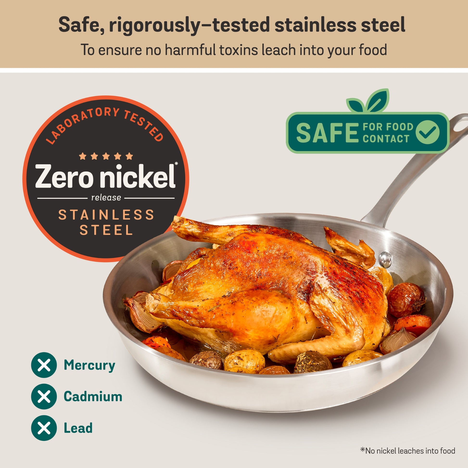 • SAFE, RIGOROUSLY-TESTED STAINLESS STEEL: Zero Nickel release surface for peace of mind.