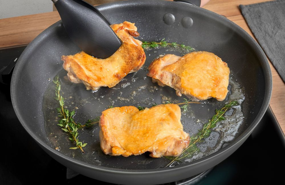 Reinforced with ceramic particles to create a smooth, ultra-durable surface that resists wear and keeps food sliding off with ease, meal after meal.