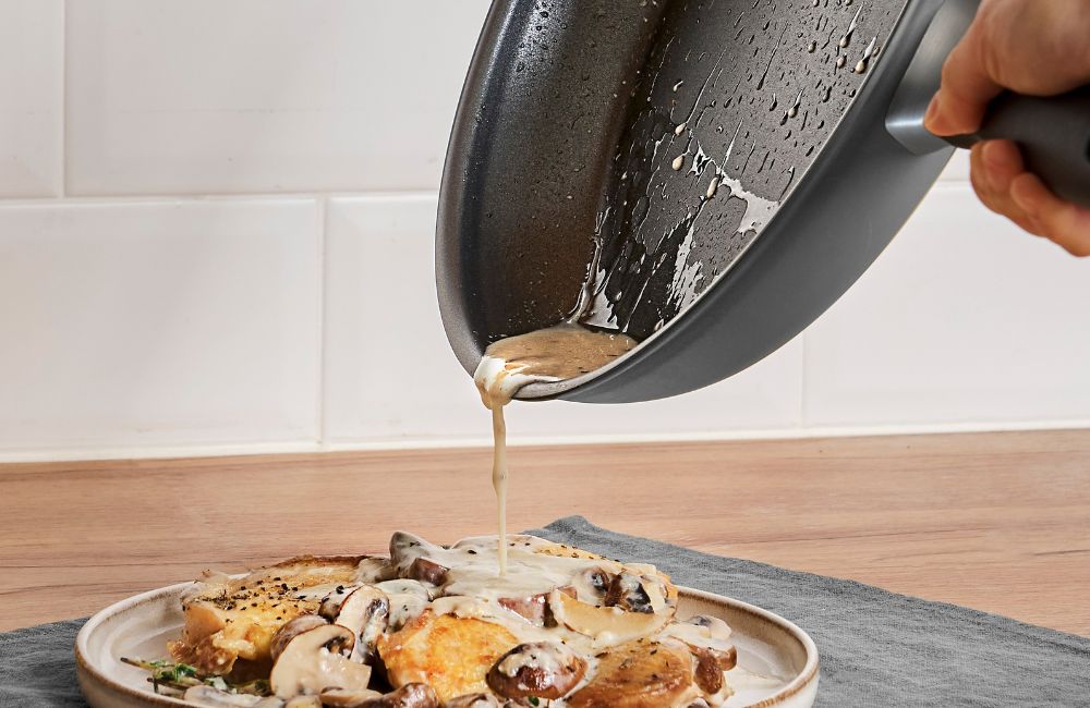 Crafted with an extra-wide cooking surface and easy-pour rim, Moda pans are perfect for everything from searing meats to tossing stir-fries, while keeping clean-up quick and simple.
