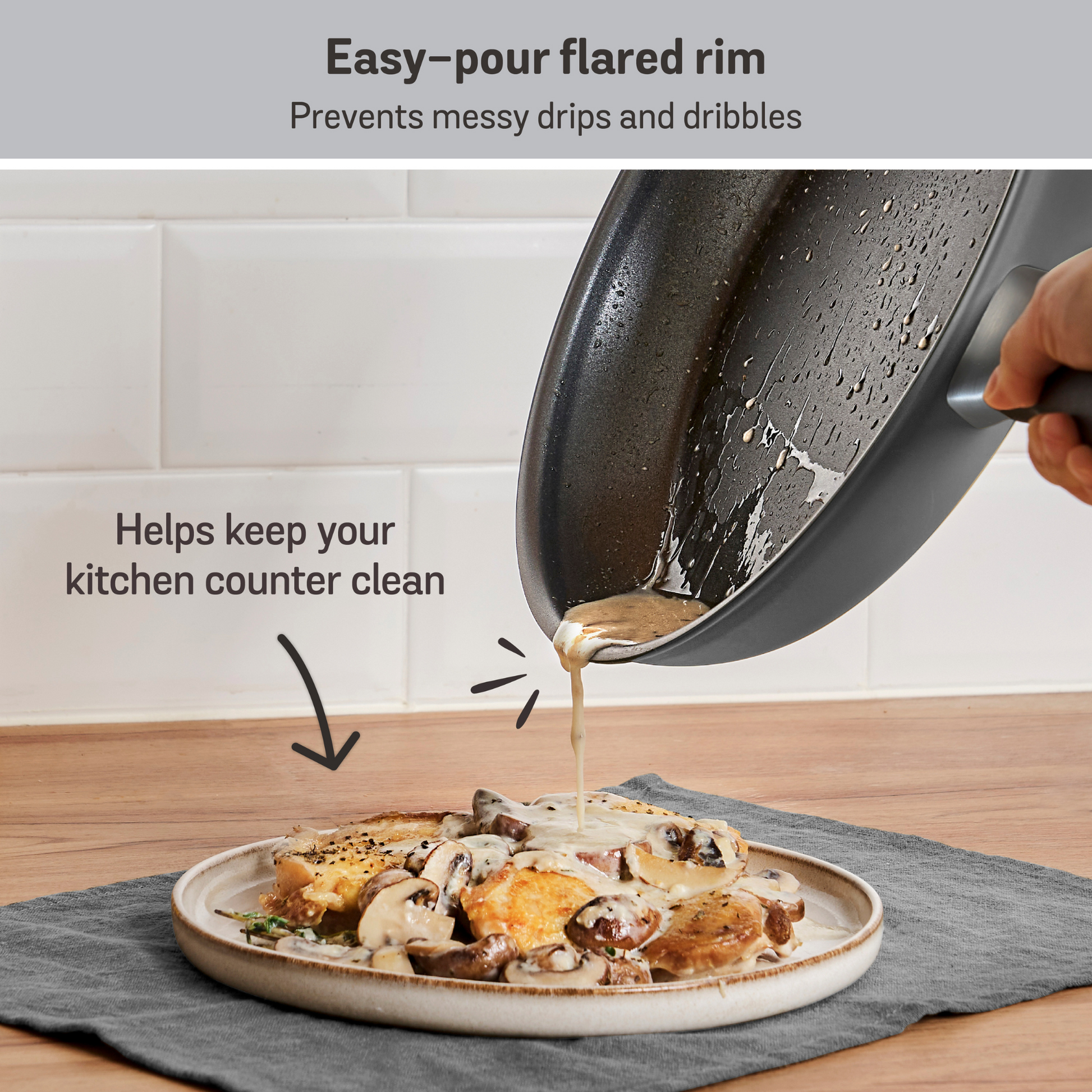 Designed for everyday meals, the extra-wide base gives you more room to cook, while the flared rim makes pouring and serving effortless.
